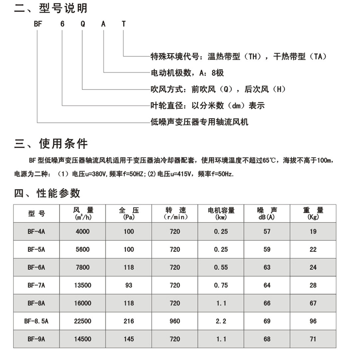 BF型風機配用的是YCF型電機,它是根據(jù)變壓器風機的具體要求而特殊設(shè)計制作的,具有以下特點: