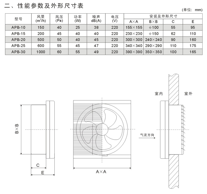 APB系列側(cè)壁式排風(fēng)換氣扇采用全工程塑料ABS制作,出風(fēng)口帶自垂百葉。具有防腐耐用、重量輕、噪聲低、安裝簡單、外觀美觀等特點。安裝于建筑物的邊墻、玻璃門窗等場所,能有效排除室內(nèi)的污濁空氣、濕氣、煙霧、塵埃,起到良好的通風(fēng)換氣作用。